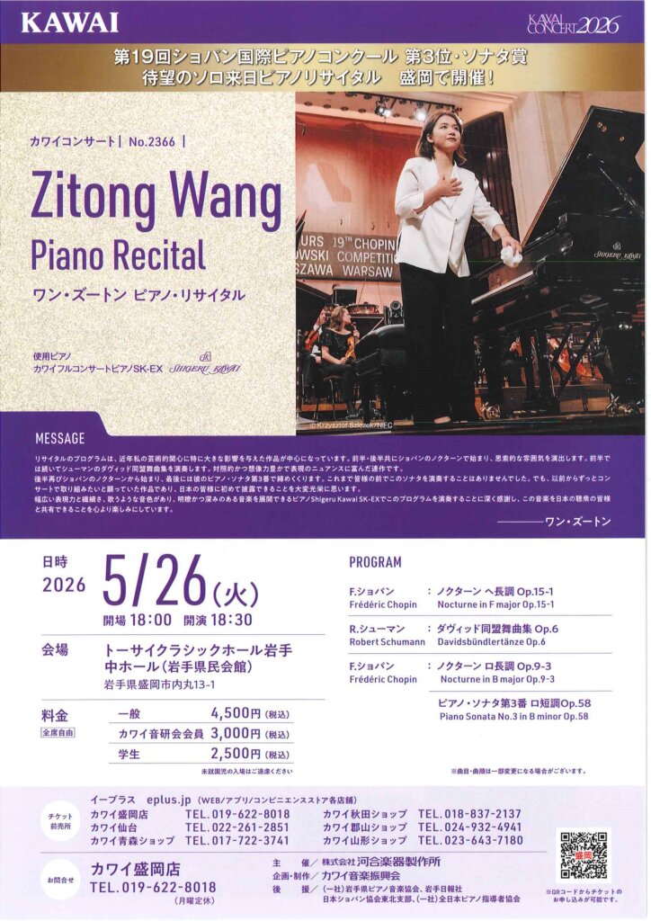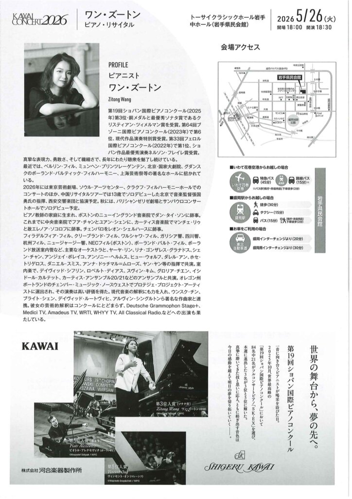 ワン・ズートン ピアノリサイタルのご案内