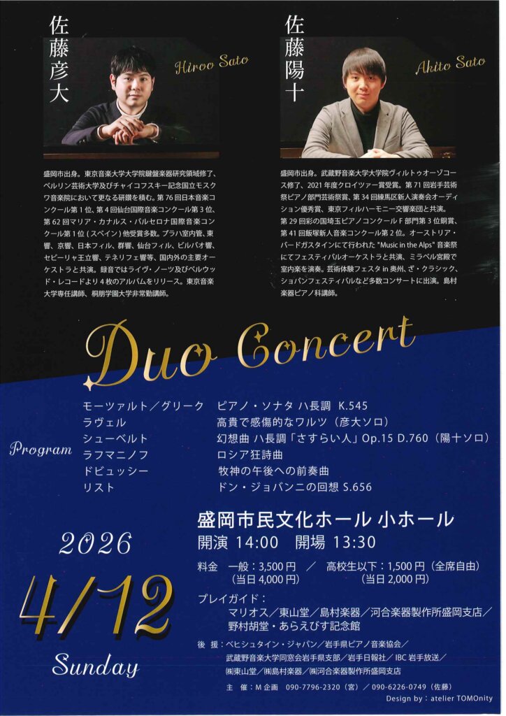 佐藤彦大 佐藤陽十 Duo Concert のご案内